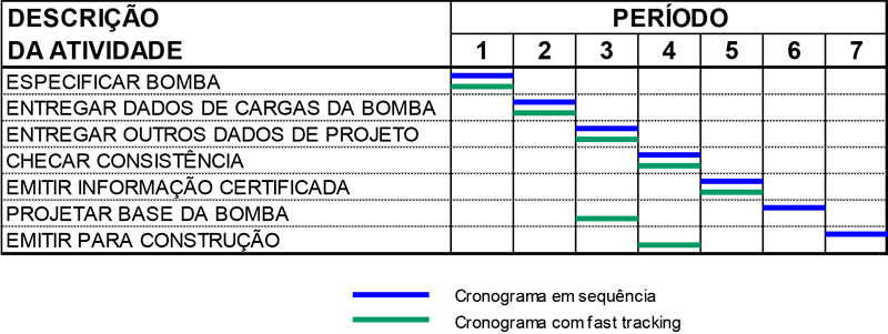 As empresas que ofereciam a solução EPC logo perceberam que, estando todas as fases dentro de seu escopo, não necessitariam esperar que todo o projeto de engenharia estivesse concluído ou todos os bens entregues para iniciar a construção, e então começaram a aplicar um paralelismo entre as fases.  Os clientes perceberam que os ganhos de prazo impactavam positivamente os modelos financeiros de seus estudos de Project Finance e passaram a solicitar em suas licitações prazos que obrigavam ao uso de fast tracking por parte dos proponentes. Hoje em dia os cronogramas com paralelismo são uma abordagem praticamente obrigatória.  Mas será que o fast tracking se resume às atividades e ligações de um cronograma?